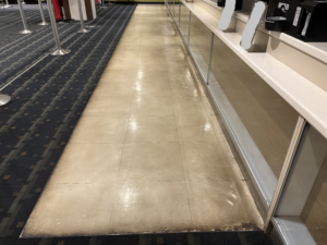 この状態になると、美観的な意味では日常清掃のモップ拭きや、