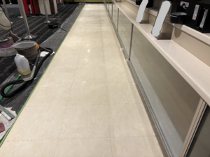 床タイルの剝離洗浄になります。